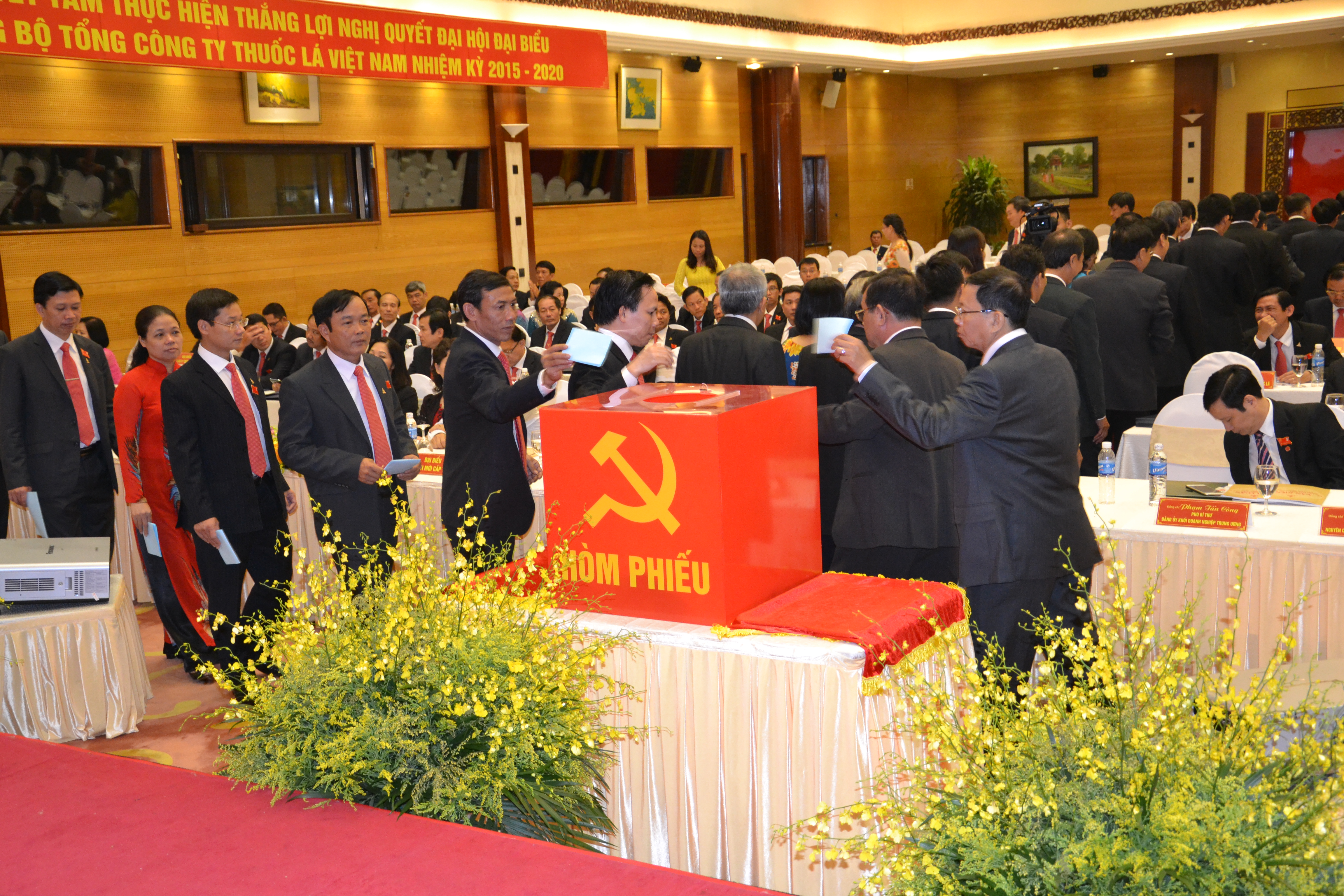 Với tinh thần “Đoàn kết – Đổi mới - Hiệu quả - Phát triển bền vững”, Đại hội đã bầu BCH Đảng bộ Tổng công ty khóa II gồm 36 đồng chí. Ông Vũ Văn Cường - Bí thư Đảng ủy, Chủ tịch HĐTV Vinataba tiếp tục được hội nghị tín nhiệm bầu giữ chức vụ Bí thư Đảng ủy Tổng công ty nhiệm kỳ 2015-2020; ông Trần Sơn Châu - Phó Bí thư Đảng ủy - Tổng giám đốc và bà Trần Thị Hoàng Mai - Phó Bí thư Đảng ủy tiếp tục được hội nghị tín nhiệm bầu giữ chức vụ Phó Bí thư Đảng ủy Vinataba nhiệm kỳ 2015-2020.
