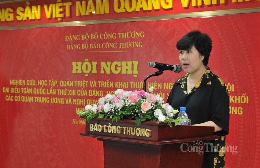 Phát biểu khai mạc Hội nghị, đồng chí Trương Thu Hiền, Bí thư Đảng ủy - Tổng Biên tập Báo Công Thương nêu rõ, Hội nghị được triển khai nhằm cụ thể hóa Chỉ thị số 01-CT/TW ngày 9/3/2021 của Bộ Chính trị khóa XIII, Hướng dẫn số 03-HD/BTGTW ngày 18/3/2021 của Ban Tuyên giáo Trung ương, Kế hoạch số 19-KH/ĐUK ngày 6/4/2021 của Đảng ủy Khối các cơ quan Trung ương, Kế hoạch số 09-KH/ĐUB ngày 22/4/2021 của Đảng ủy Bộ Công Thương về việc nghiên cứu, học tập, quán triệt, tuyên truyền và triển khai thực hiện Nghị quyết Đại hội đại biểu toàn quốc lần thứ XIII của Đảng nhiệm kỳ 2020-2025, Nghị quyết Đại hội đại biểu Đảng bộ Khối các cơ quan Trung ương lần thứ XIII nhiệm kỳ 2020-2025; Nghị quyết Đại hội Đảng bộ Bộ Công Thương lần thứ III nhiệm kỳ 2020-2025.