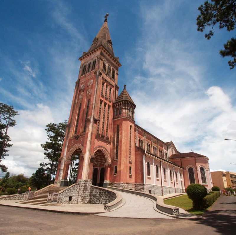 Nhà thờ Con Gà ở Đà Lạt được xây dựng từ năm 1931 và được hoàn thành vào năm 1942 do người Pháp xây dựng theo lối kiến trúc Roman độc đáo. Nhà thờ được xây dựng theo hình chữ thập, dài 65m, cao 47m cả mặt đứng và mặt bằng đều được xây dựng cân đối với nhau. Bên cạnh đó, với độ cao này khi đứng từ tháp chuông mọi người có thể chiêm ngưỡng được toàn cảnh TP. Đà Lạt.