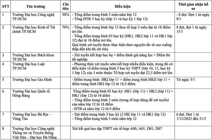 Cụ thể, theo phương án tuyển sinh đại học 2024, nhiều trường bắt đầu nhận hồ sơ xét tuyển theo phương thức học bạ từ tháng 1/2024, thí sinh tham khảo để lựa chọn phù hợp.