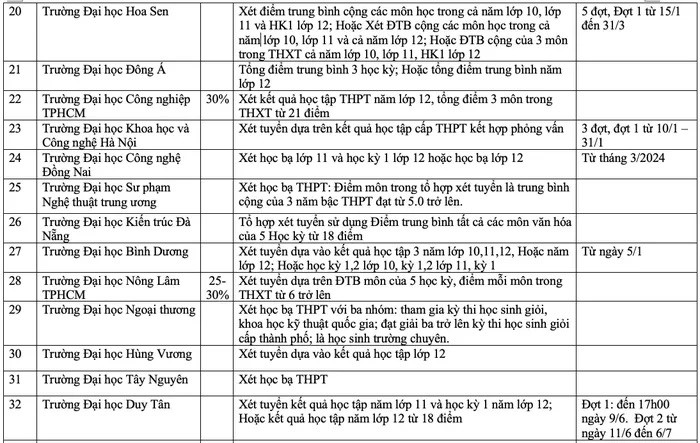 Tính đến thời điểm hiện tại, đã có 32 trường đại học xét tuyển học bạ năm 2024.