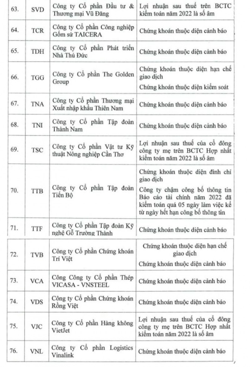 Theo quy định, nhà đầu tư sẽ không được sử dụng margin do công ty chứng khoán môi giới cấp để mua 76 mã cổ phiếu bị xếp vào danh sách chứng khoán không đủ điều kiện giao dịch ký quỹ này.