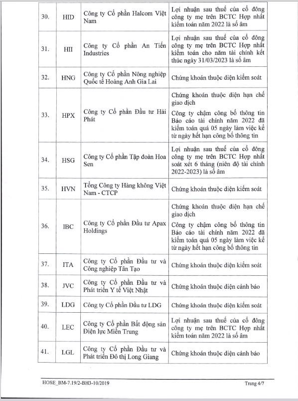 Các cổ phiếu HBC, HPX, IBC... cũng bị cắt margin do đang trong diện hạn chế giao dịch của HOSE nên không thể giao dịch ký quỹ. Hai mã cổ phiếu thuộc hệ sinh thái Hoàng Anh Gia Lai là HAG và HNG cũng đồng loạt bị cắt margin do nằm trong diện cảnh báo.