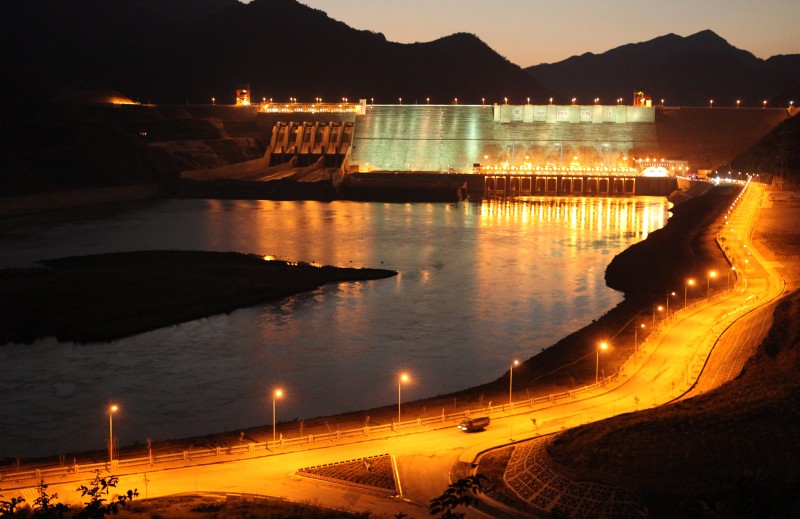 | Đập thủy điện Sơn La sáng rực rỡ trong đêm (nhìn từ phía hạ lưu) - Ảnh Chính Tới |