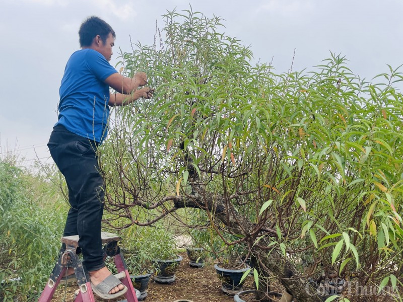 “Tùy theo từng giống đào, thời gian tuốt lá sẽ khác nhau. Cũng có những loại đào phải tuốt trước Tếtkhoảng 3 tháng”, anh Huê nói thêm.