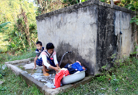 | Nhờ nguồn vốn vay nước sạch và vệ sinh môi trường nông thôn, nhiều công trình nước sạch được xây dựng đã giúp bà con dân tộc thiểu số vùng khó khăn có điều kiện dùng nước sạch |