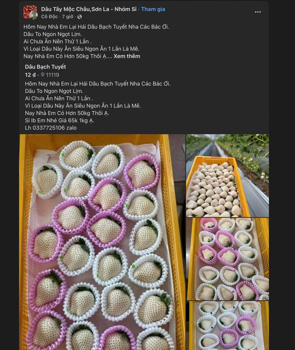 | Dâu tây Bạch Tuyết "làm mưa, làm gió" chợ mạng. Ảnh chụp màn hình |