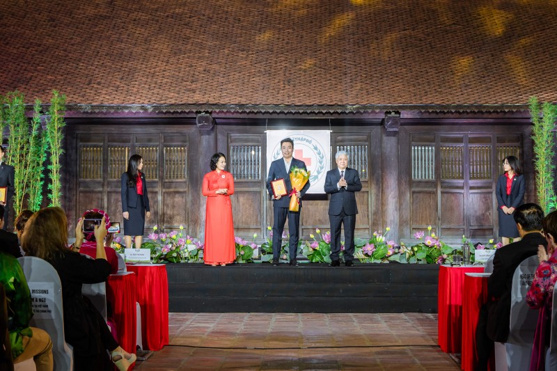 | Ông Phạm Sơn Tùng – Trưởng ban điều hành Quỹ nhận hoa tri ân từ đại diện Trung ương Hội Chữ thập đỏ Việt Nam |