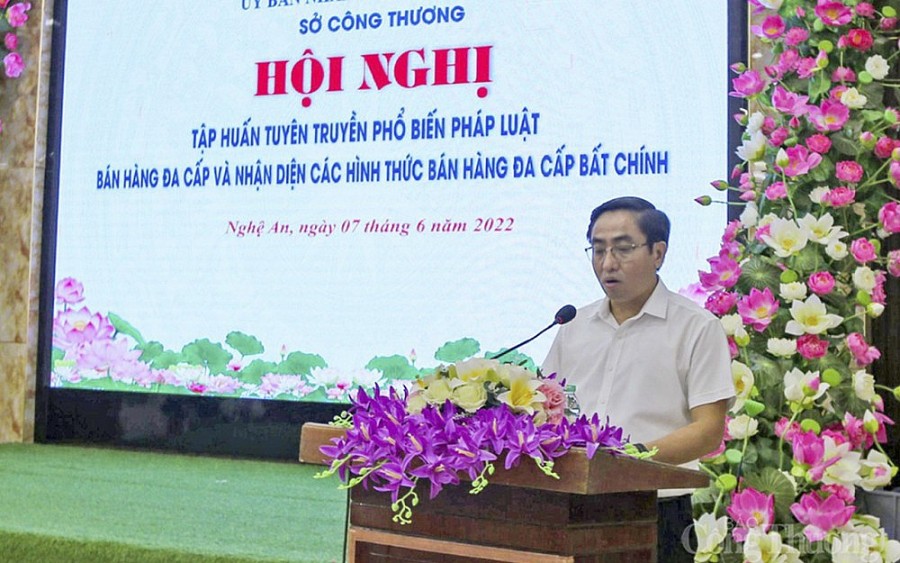 Sáng 7/6, Sở Công Thương tỉnh Nghệ An tổ chức Hội nghị trực tiếp kết hợp trực tuyến tuyên truyền pháp luật kinh doanh đa cấp và nhận diện các hình thức bán hàng đa cấp bất chính với hơn 300 điểm cầu ở 21 huyện, thành, thị trên địa bàn.