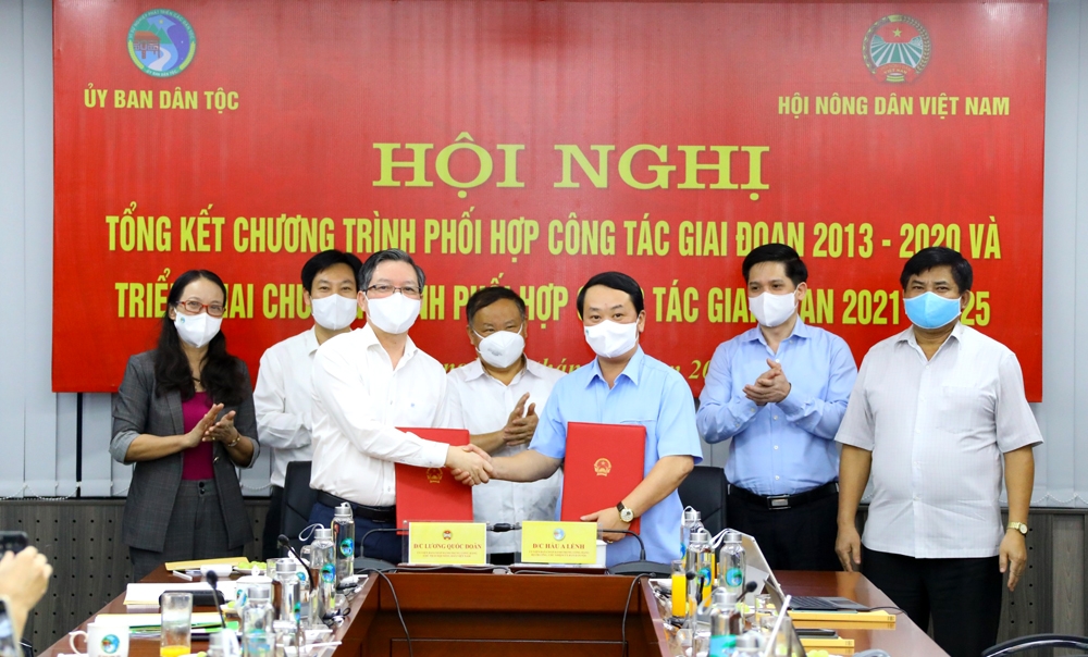 | Bộ trưởng, Chủ nhiệm UBDT Hầu A Lềnh và Chủ tịch Trung ương HND Việt Nam Lương Quốc Đoàn ký kết Chương trình phối hợp công tác giai đoạn 2021 - 2025 |