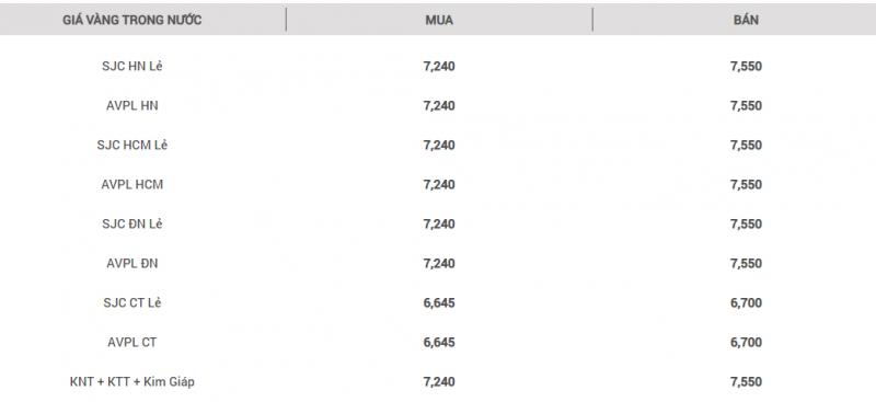 Cùng thời điểm, giá vàng SJC được DOJI niêm yết ở mức 72,4 triệu đồng/lượng mua vào và 75,5 triệu đồng/lượng bán ra. Chênh lệch giá mua bán tại DOJI hiện ở mức 3,1 triệu đồng/lượng.