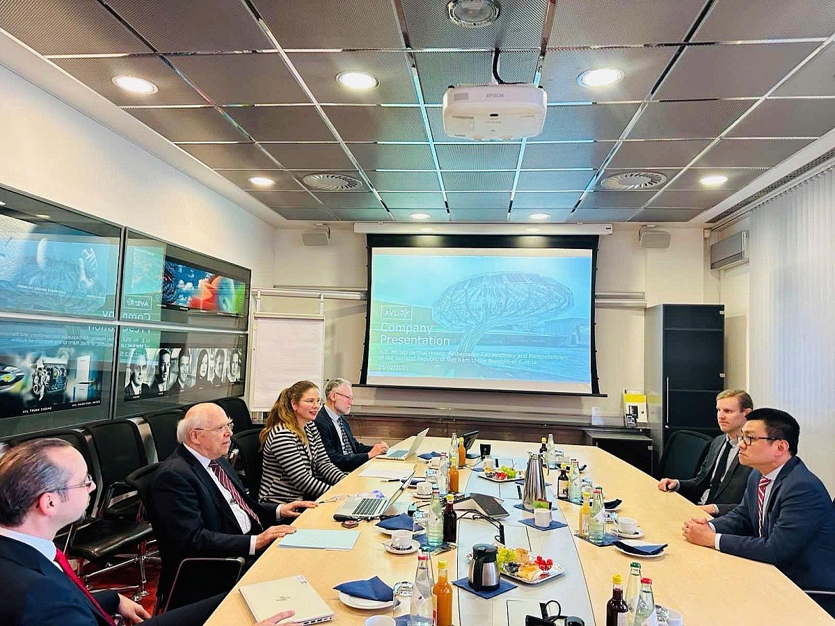 Thông tin từ Thương vụ Việt Nam tại Áo, ngày 5/2/2025, Đại sứ Vũ Lê Thái Hoàng – Đại sứ Việt Nam tại Áo và Trưởng Thương vụ, Đại sứ quán Việt Nam tại Áo - bà Đinh Thị Hoàng Yến đã gặp và làm việc với lãnh đạo Công ty Magna Steyr và Công ty AVL tại Graz.