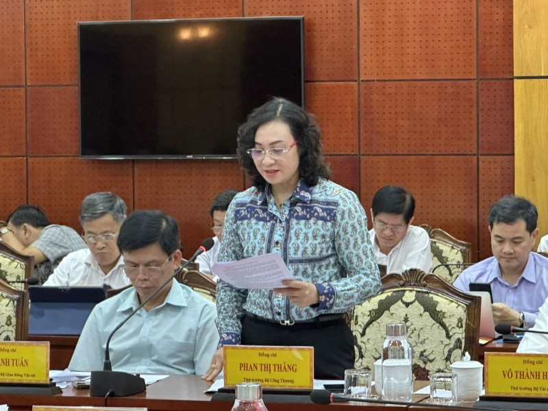 | Thứ trưởng Bộ Công Thương Phan Thị Thắng phát biểu tại buổi làm việc |
