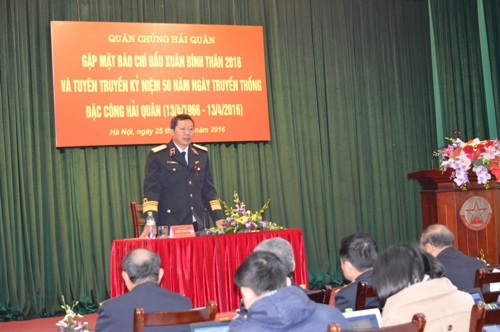 Tại buổi gặp mặt, Chuẩn đô đốc Đặng Minh Hải trân trọng cảm ơn và ghi nhận sự quan tâm của các cơ quan thông tấn báo chí trong và ngoài quân đội đã kịp thời phản ánh sinh động những hoạt động của bộ đội hải quân và quân, dân trên câc vùng biển, đảo trong thời gian qua đã thông báo những kết quả mà Quân chủng Hải quân đã đạt được trên các mặt công tác trong năm 2015.