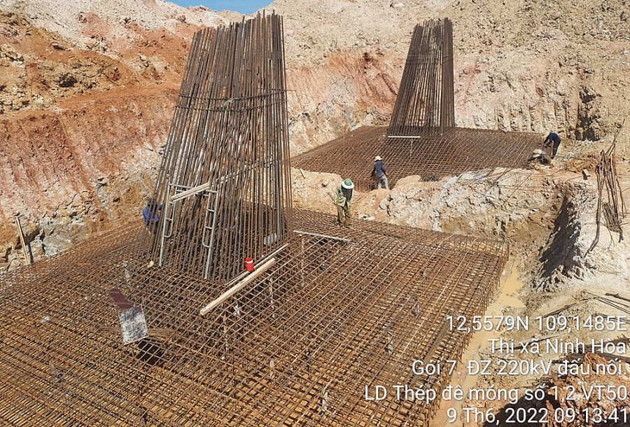 | Thi công vị trí móng số 50 đường dây 500kV Vân Phong – Vĩnh Tân thuộc địa bàn thị xã Ninh Hòa, tỉnh Khánh Hòa, ngày 9/6/2022 |