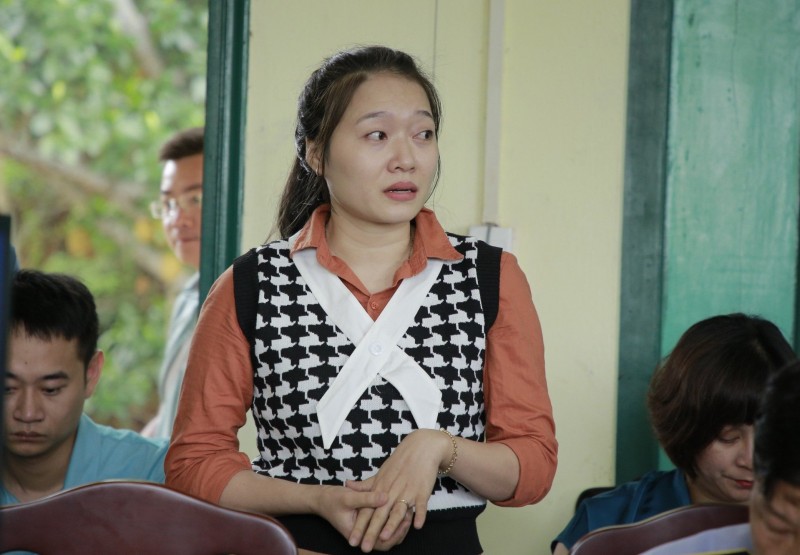 | Chị Đặng Thị Ngọc Huyền - em ruột ngư dân Đặng Minh Vương (thuyền viên tàu QNa 90129 TS đang mất tích) |