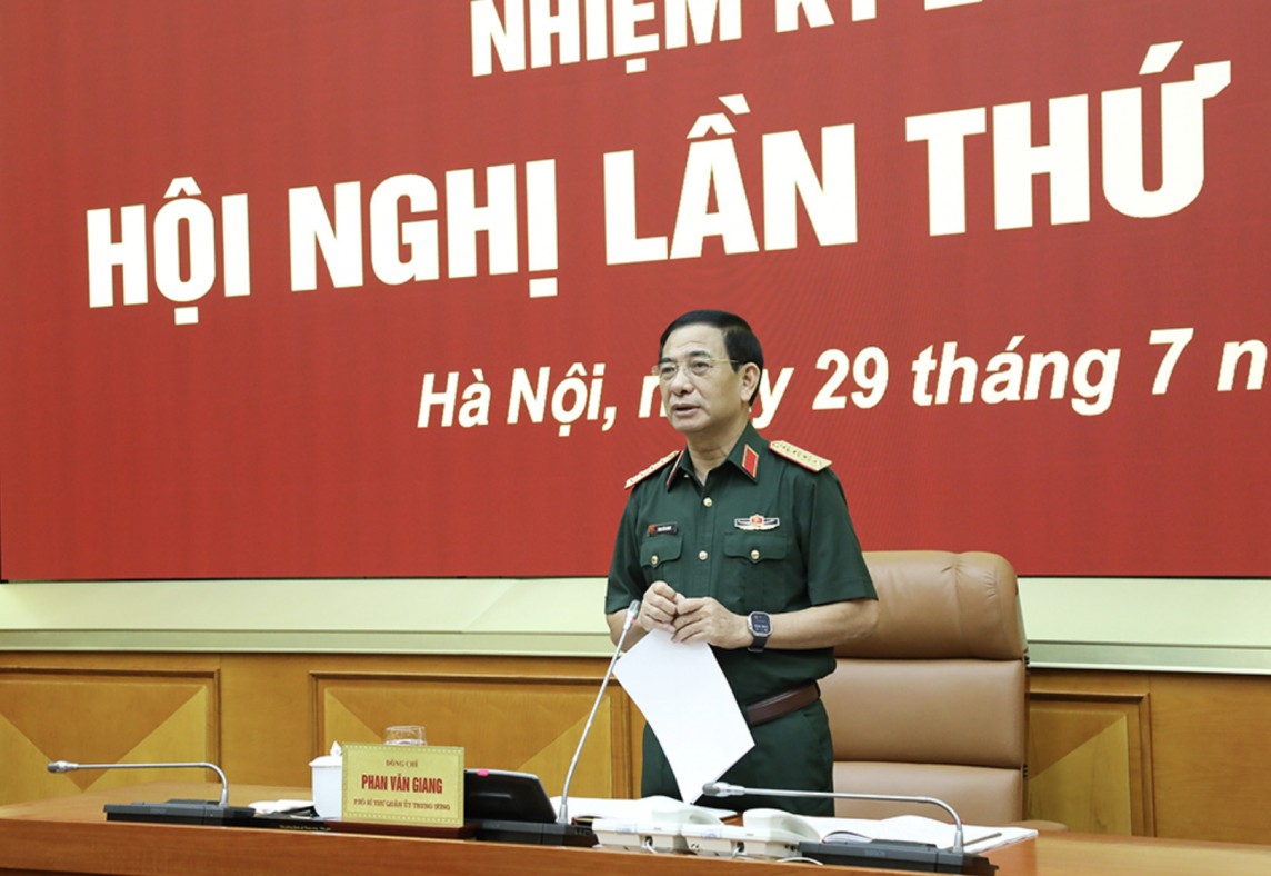 Sáng 29/7, tại Hà Nội, Đại tướng Phan Văn Giang, Ủy viên Bộ Chính trị, Phó Bí thư Quân ủy Trung ương, Bộ trưởng Bộ Quốc phòng chủ trì Hội nghị Quân ủy Trung ương lần thứ Mười một cho ý kiến về dự thảo Luật sửa đổi, bổ sung một số điều của Luật Sĩ quan Quân đội nhân dân (QĐND) Việt Nam (viết tắt là Luật Sĩ quan).