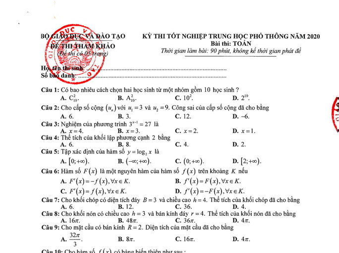 | Đề thi chính thức, đề thi dự bị, đáp án đề thi chính thức, đáp án đề thi dự bị của các kỳ thi tốt nghiệp trung học phổ thông... là tài liệu Tối mật. |