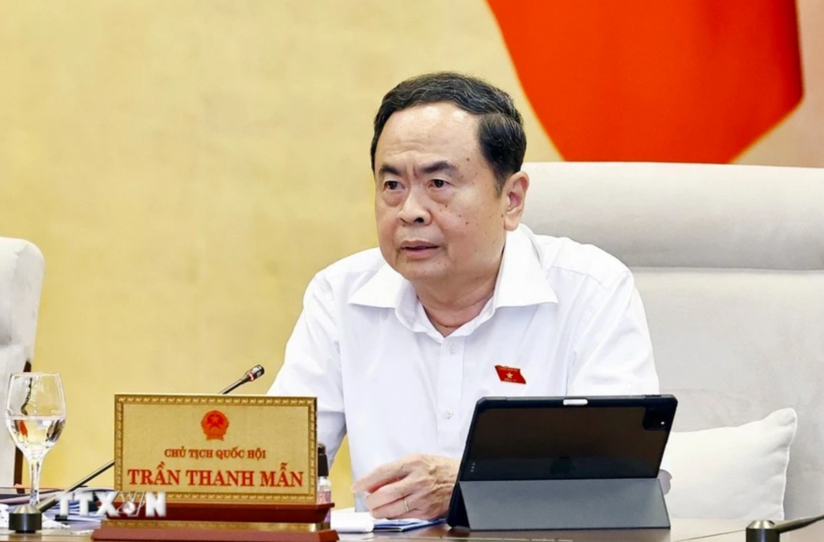 | Chủ tịch Quốc hội Trần Thanh Mẫn phát biểu tại buổi họp. Ảnh: Doãn Tấn/TTXVN |