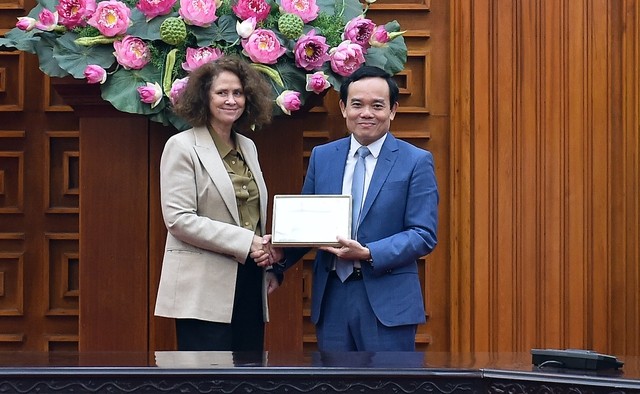 | Phó Thủ tướng Trần Lưu Quang và Giám đốc Quốc gia Ngân hàng Thế giới (WB) tại Việt Nam Carolyn Turk - Ảnh: VGP/Hải Minh |