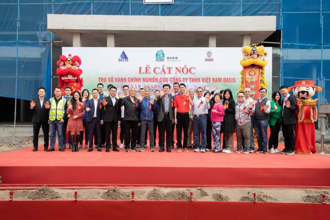 Cũng trong ngày 12/3, DELTA Group đã thực hiện Lễ cất nóc Trụ sở Hành chính Nghiên cứu của Công ty TNHH Việt Nam Oasis. Dự án được được đánh giá cao về chất lượng thi công xây dựng. Các hạng mục của dự án bao gồm thi công cọc ép, móng, thô, hoàn thiện cho 7 tòa nhà kèm hạ tầng và đường giao thông nội bộ trên diện tích 50.000m2. Với việc thiết kế và xây dựng theo tiêu chuẩn LEED Gold của Mỹ, DELTA Group đã thể hiện cam kết của mình đối với việc bảo vệ môi trường và sử dụng năng lượng hiệu quả.
