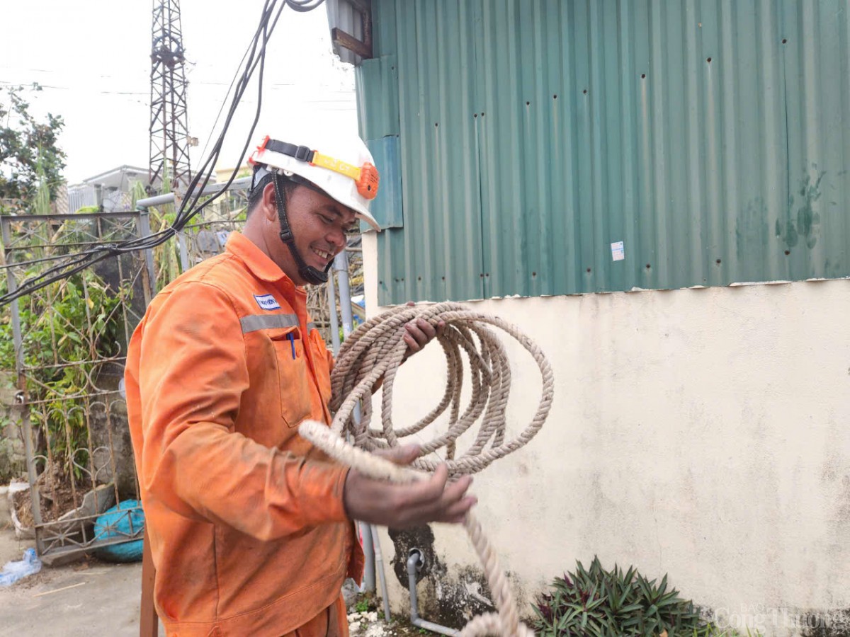 | Dù vất vả, mệt nhọc những người thợ điện luôn nở nụ cười tươi |