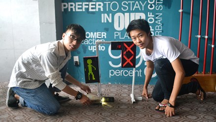 Đó là hệ thống đèn giao thông thông minh của hai cậu học trò Đà Nẵng: Nguyễn Tiến Dũng (lớp 11A5, THPT chuyên Lê Quý Đôn) và Lê Nhật Hưng (lớp 12A10, THPT Trần Phú).