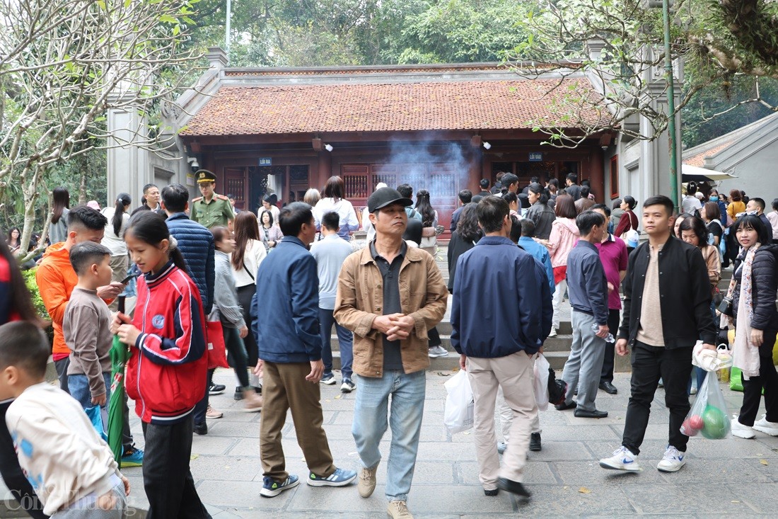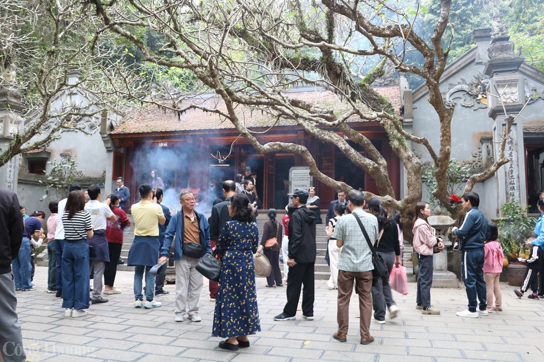 | Du khách tập trung rất đông tại khuôn viên Đền Hạ |