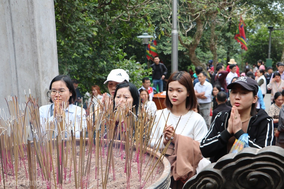 | Người dân thành kính dâng hương tại Đền Thượng. |