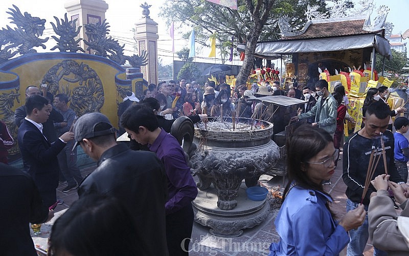 Những ngày đầu năm mới Quý Mão 2023, đền ông Hoàng Mười tại làng Xuân Am xã Hưng Thịnh, huyện Hưng Nguyên (tỉnh Nghệ An) đón rất đông du khách tới lễ cầu may, xin lộc.