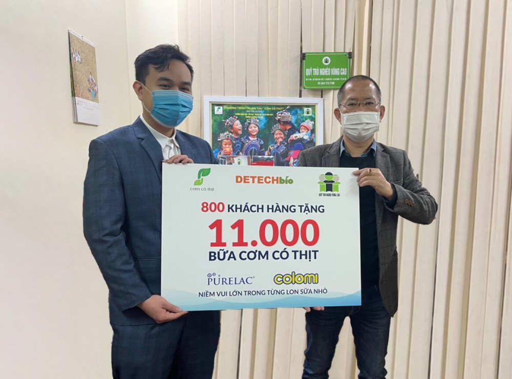 Tháng 05/2021, Công ty DETECHbio đã trao tặng hơn 150 hộp sữa PureLac cho các em nhỏ mồ côi tại Trung tâm Bảo trợ Xã Hội III (Nam Từ Liêm, Hà Nội) và các em nhỏ đang trong vùng cách ly tại huyện Quế Võ (Bắc Ninh). Năm 2020, DETECHbio trao tặng 120 hộp sữa PureLac đến cán bộ, giáo viên, nhân viên trường Tiểu học Tam Hợp (Nghệ An) và 150 hộp sữa PureLac đến trường Tiểu học và Trung học Cơ sở xã Si Pa Phìn, huyện Nậm Pồ, tỉnh Điện Biên.