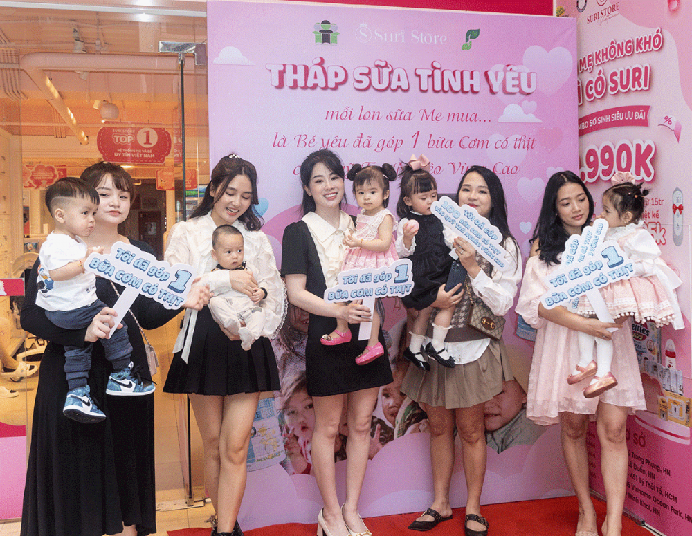 Chương trình kích hoạt Tháp sữa Tình yêu tại Suri Store thu hút nhiều mẹ và bé tham gia. |