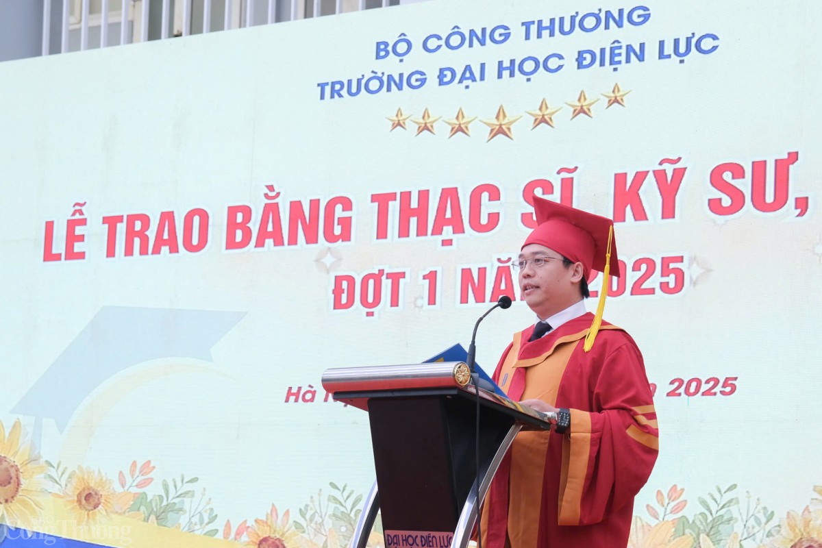 Phát biểu tại Lễ tốt nghiệp, TS. Dương Trung Kiên – Phó hiệu trưởng Trường Đại học Điện lực nhấn mạnh: Lễ tốt nghiệp không chỉ là cột mốc đánh dấu sự hoàn thành một chặng đường học tập, mà còn là khởi đầu của một hành trình mới. Chúng ta đang sống trong thời đại công nghệ số, nơi mà sự phát triển không ngừng của khoa học, kỹ thuật và công nghệ đã và đang tạo ra những biến chuyển mạnh mẽ trong mọi lĩnh vực của đời sống.
