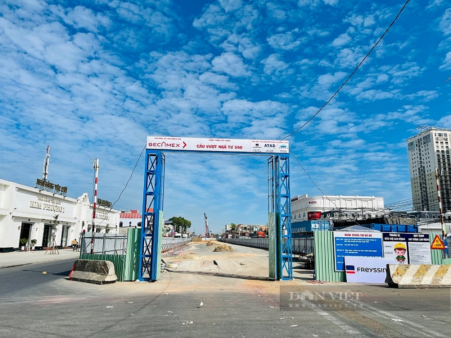 Sau nhiều lần lỡ hẹn, những ngày cuối năm 2021, cầu vượt ngã tư 550 đã chính thức được khởi công. Ghi nhận đến giữa tháng 12, tại ngã tư 550 (điểm giao của hai tuyến huyết mạch ĐT.743 và ĐT.743B), nhà thầu đã tiến hành làm hàng rào vây quanh để phục vụ cho công tác thi công. Công trình có bề rộng 16m, chiều dài cầu 203,4m, vận tốc thiết kế 60km/h. Thời gian thi công dự tính khoảng 6 - 7 tháng.