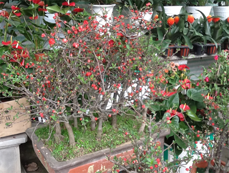 CôngThương - Tại Hà Nội, hầu hết các địa điểm kinh doanh chuyên về hoa cây cảnh như Nghi Tàm, Quảng Bá, Hoàng Hoa Thám… đã bày bán nhiều loại cây đặc trưng của ngày tết như hoa đào, hoa mai, quất, địa lan, cam canh, bưởi diễn, hoa trà… Nắm bắt nhu cầu ưa chuộng những loại cây độc đáo, lạ mắt, các chủ hàng cũng đưa ra nhiều loại như: kim ngân lượng, cúc báo xuân, tiên ông, tulip, mai đỏ, phật thủ, mẫu đơn cung đình… với mức giá phù hợp với người mua.