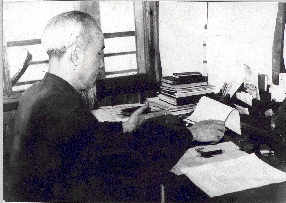 | Chủ tịch Hồ Chí Minh làm việc tại Nhà sàn trong Phủ Chủ tịch. Ảnh tư liệu. |