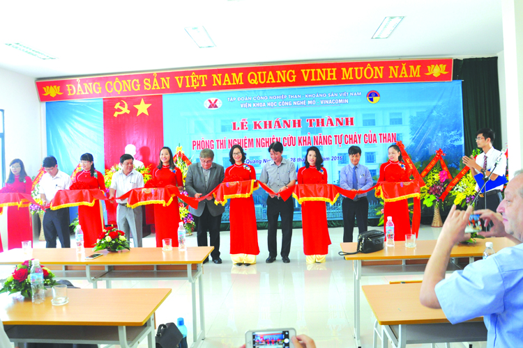 Viện trưởng Trần Tú Ba và đại diện Viện Gig cắt băng khánh thành phòng Thí nghiệm nghiên cứu khả năng tự cháy than |