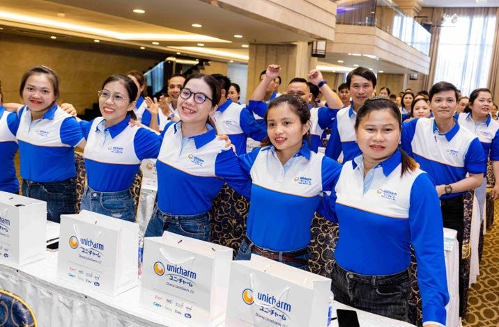 | Đội ngũ nhân sự Cộng hưởng Unicharm giàu khát vọng, giàu kinh tế, giàu thể chất và tinh thần. |