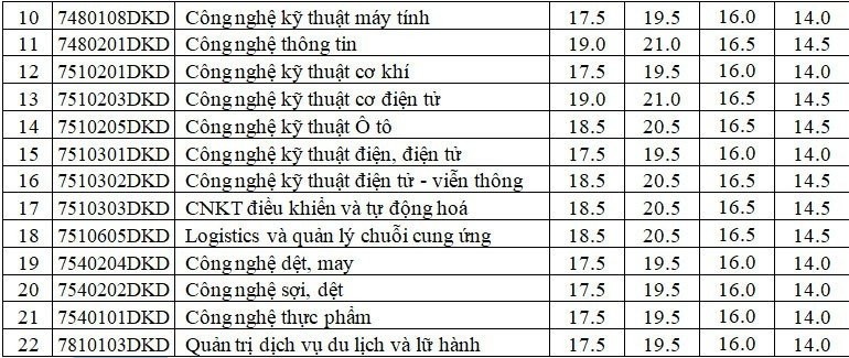 Điểm chuẩn đại học 2023 của Trường Đại học Kinh tế - Kỹ thuật Công nghiệp cụ thể như sau: