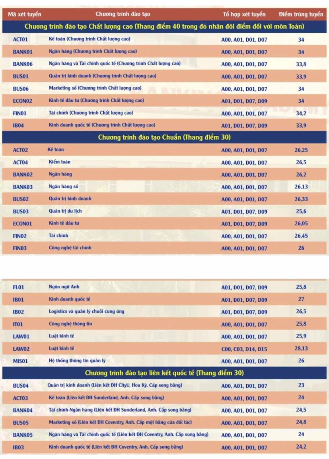 | Điểm chuẩn Học viện Ngân hàng năm 2024 |