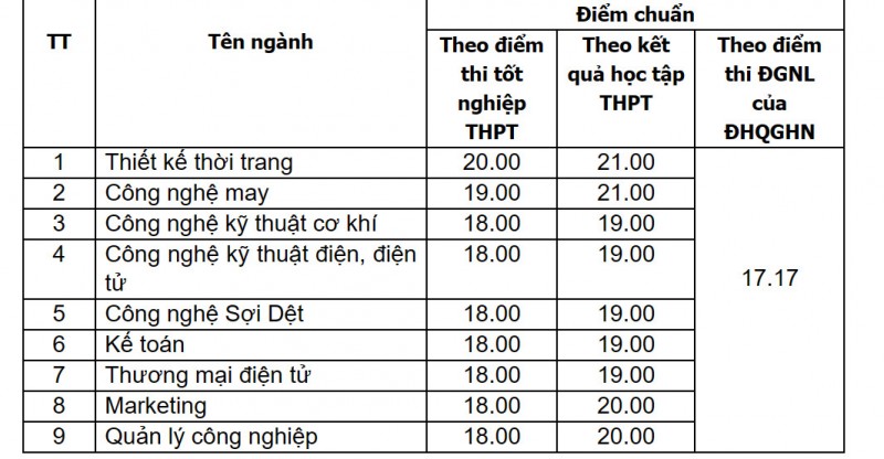 | Điểm chuẩn Trường Đại học công nghiệp dệt may cao nhất 21 điểm |