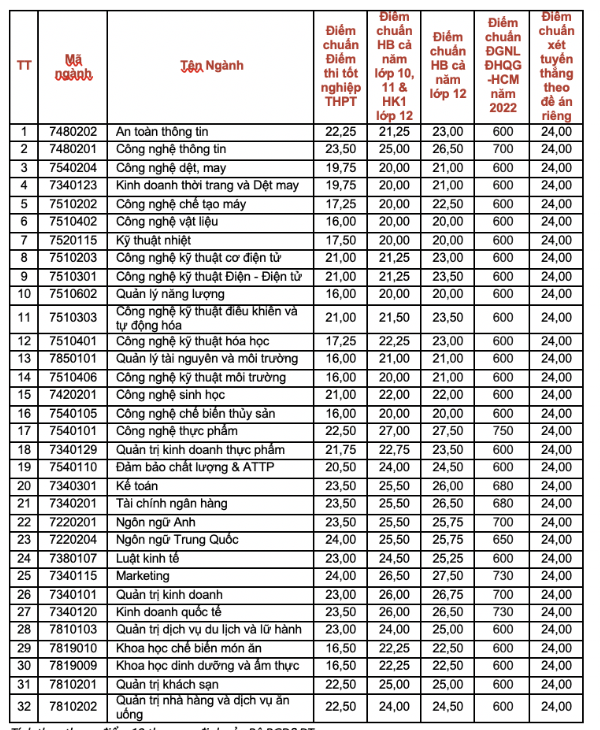 Điểm chuẩn Trường Đại học Công nghiệp thực phẩm TP. Hồ Chí Minh năm 2022