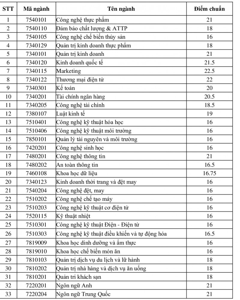 Trường Đại học Công Thương TP.Hồ Chí Minh công bố điểm chuẩn năm 2023 phương thức xét tuyển bằng điểm thi tốt nghiệp THPT cho 33 ngành đào tạo trình độ đại học chính quy. Thí sinh trúng tuyển sẽ làm thủ tục nhập học từ ngày 24/8 đến 10/9/2023.