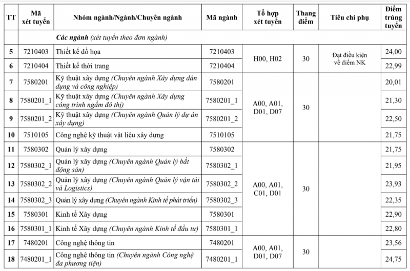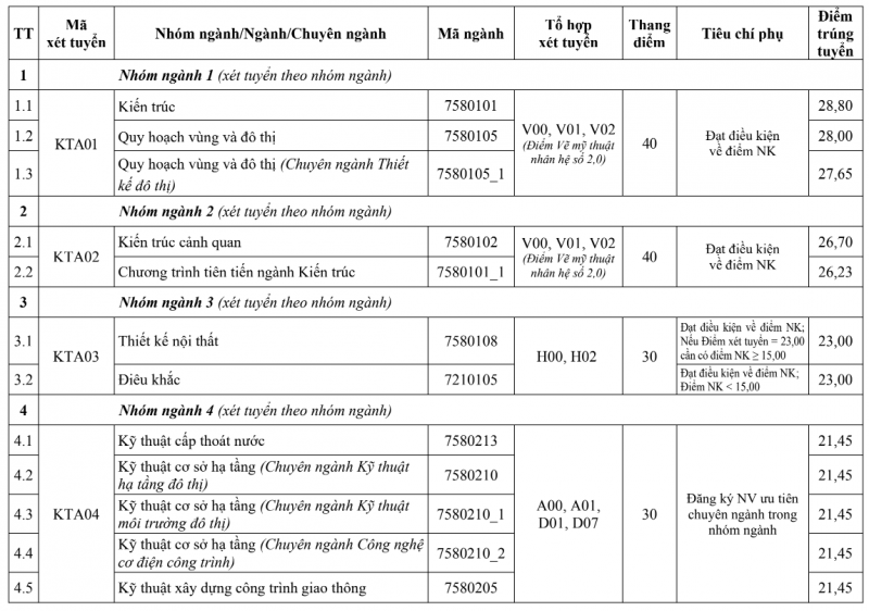 Dưới đây là bảng điểm chuẩn đại học 2023 các ngành của Đại học Kiến trúc Hà Nội: