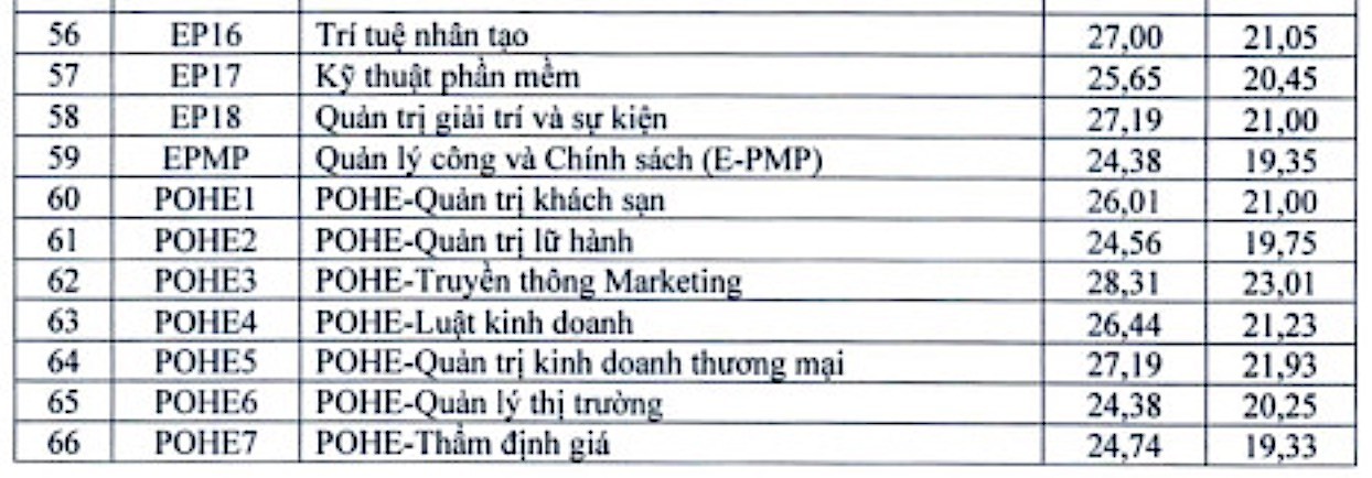 Mức thấp nhất của nhóm này là 24,38, áp dụng với một số ngành như: Quản lý tài nguyên và môi trường, Quản lý đất đai, Quản trị chất lượng và Đổi mới, Quản lý công và Chính sách.