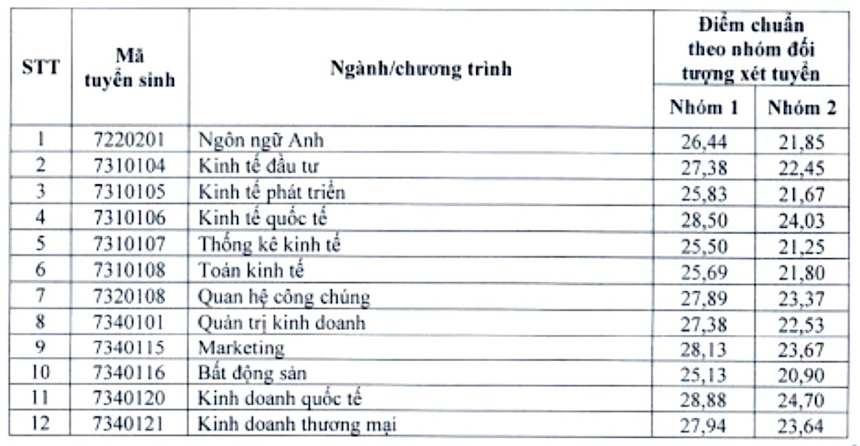 | Điểm chuẩn xét tuyển sớm của Trường Đại học Kinh tế Quốc dân |