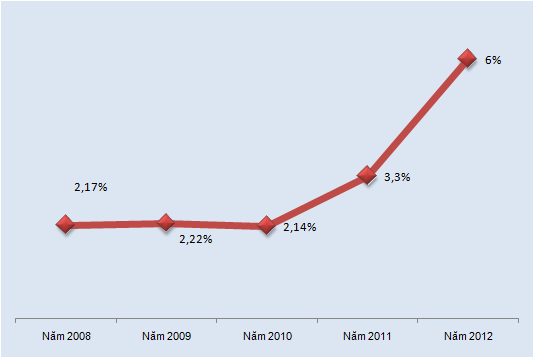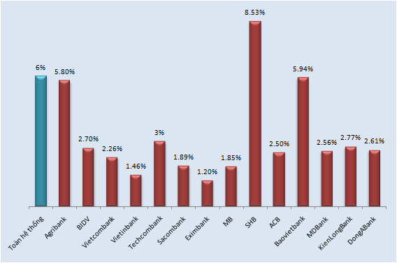 Tại thời điểm đầu năm 2013, theo công bố của Thống đốc NHNN Nguyễn Văn Bình, tỷ lệ nợ xấu của toàn hệ thống ở mức 6%, giảm đáng kể so với mức 8 – 10% hồi tháng 10 năm ngoái. Còn số liệu từ các TCTD báo cáo lên NHNN thì tỷ lệ này dừng ở mức chưa đến 5%. Dù con số nào đi chăng nữa, tốc độ nợ xấu vẫn tăng chóng mặt so với các năm trước, khi năm 2008 tỷ lệ nợ xấu chỉ là 2,17%; năm 2009 là 2,2%; 2010 là 2,14% và 2011 là 3,3% trên tổng dư nợ.