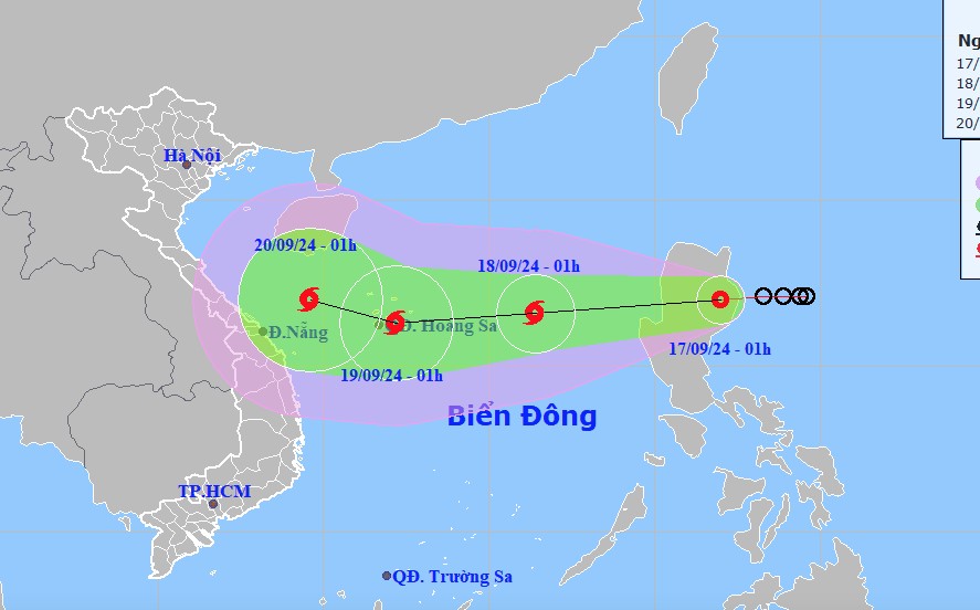 Theo Trung tâm Dự báo khí tượng thủy văn quốc gia, vào lúc 13 giờ ngày 17/9, vị trí tâm áp thấp nhiệt đới ở vào khoảng 16,8 độ Vĩ Bắc; 119,0 độ Kinh Đông, trên vùng biển phía Đông khu vực Bắc Biển Đông, cách quần đảo Hoàng Sa khoảng 820 km về phía Đông.
