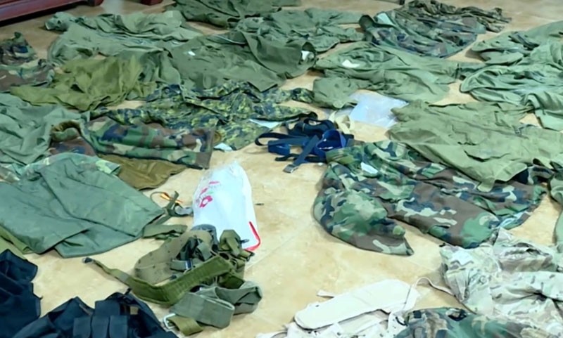 Trước đó, qua công tác nắm tình hình, Phòng An ninh kinh tế Công an tỉnh phát hiện ông Dương Văn Sơn (ở khu phố Thanh Bình, phường Đồng Kỵ, thành phố Từ Sơn) thường xuyên livestream, đăng bài bán quần áo rằn ri, quần áo có kiểu dáng giống trang phục quân đội nước ngoài đã qua sử dụng trên nền tảng mạng xã hội facebook. Phòng An ninh kinh tế chủ trì phối hợp với Cục Quản lý thị trường tỉnh, Công an thành phố Từ Sơn kiểm tra điểm bán hàng nhà ông Dương Văn Sơn phát hiện 45 áo khoác và măng tô; một số quần áo rằn ri, áo giáp chống đạn đã qua sử dụng; 7 dây lưng vải dù; 2 mũ vải và 406 phụ kiện gắn theo quần áo giống phù hiệu, nhãn mác có quy cách tương tự cấp bậc, quân hiệu của quân đội nước ngoài.