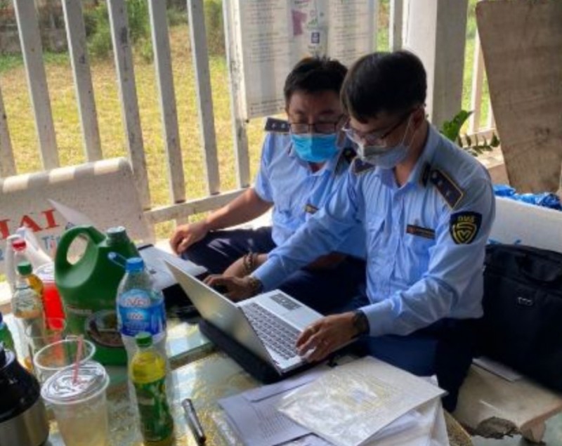 | Quản lý thị trường lập biên bản xử phạt (Ảnh: QLTT Long An) |